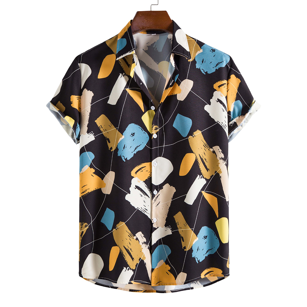 Product Name: Graffiti White/Black Lapel Casual Short Sleeve Shirts